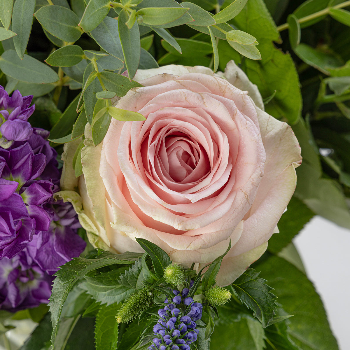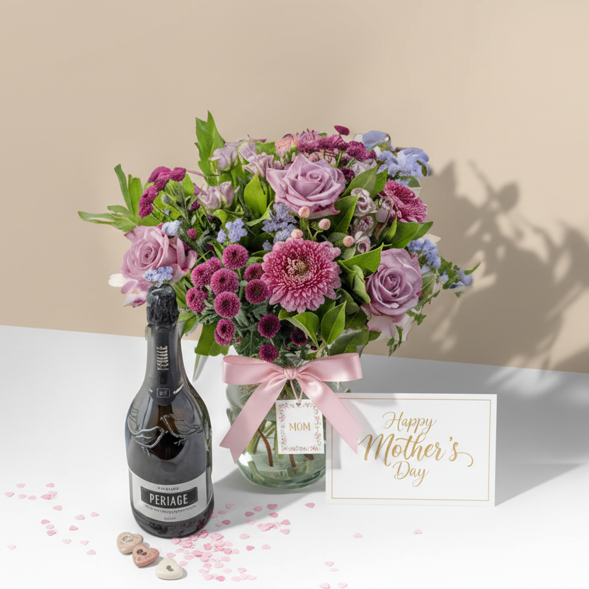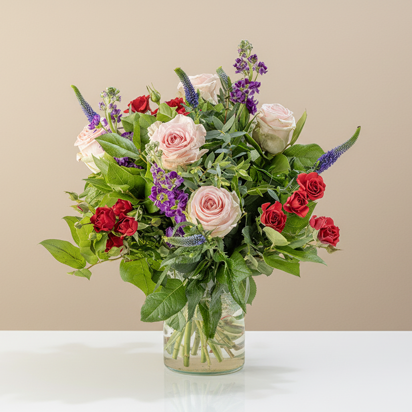Embrace the whimsical allure of Veronica blooms and the lush greenery of salal stems, adding depth and elegance to this captivating arrangement. Let the hues of pink, red, lilac, and blue intertwine, creating a symphony of colours that mirrors the depth of gratitude we hold for our mothers. Honor their strength, kindness, and unwavering love with our Choice Blossoms bouquet, a heartfelt gesture that speaks volumes without saying a word.