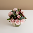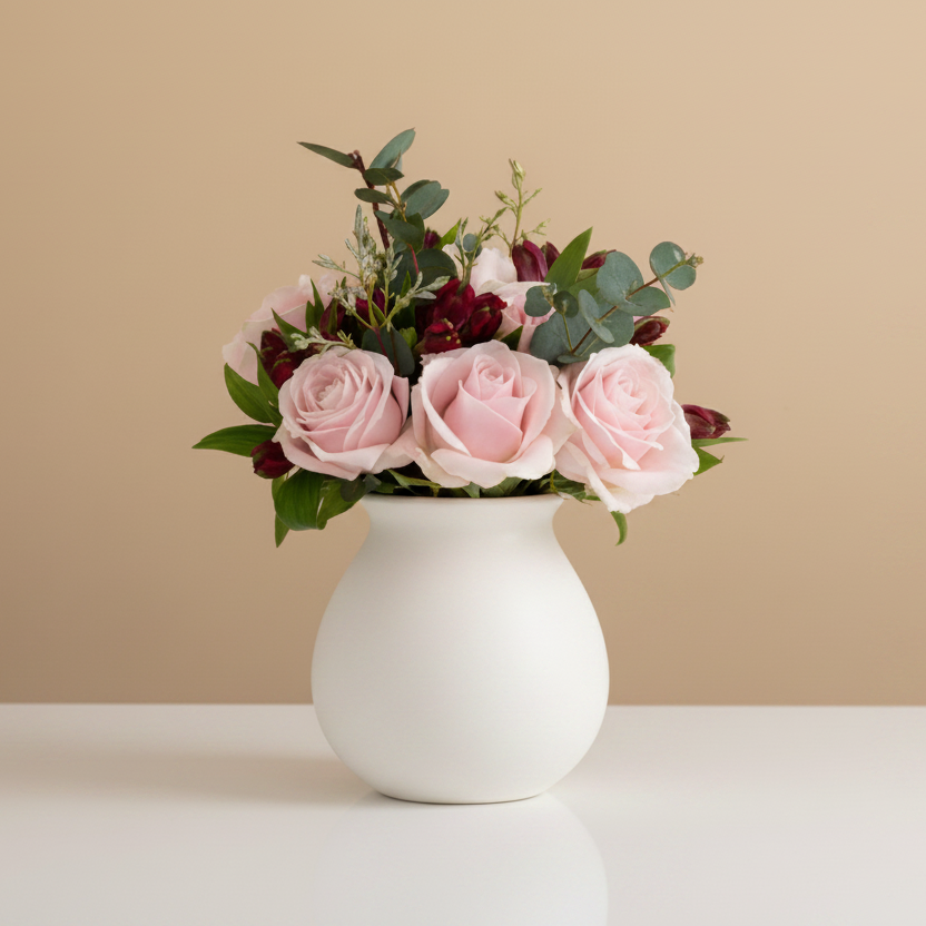 Charming, compact, and full of love, the Mini Me Rose bouquet makes a big impression in a small package. Featuring premium Ecuadorian rose in soft pink, complemented by bold red alstroemeria for contrast, and finished with fragrant Irish eucalyptus (euco) for texture and longevity. Ideal for delivery, desk-side surprises, or as a thoughtful “thinking of you” gift.