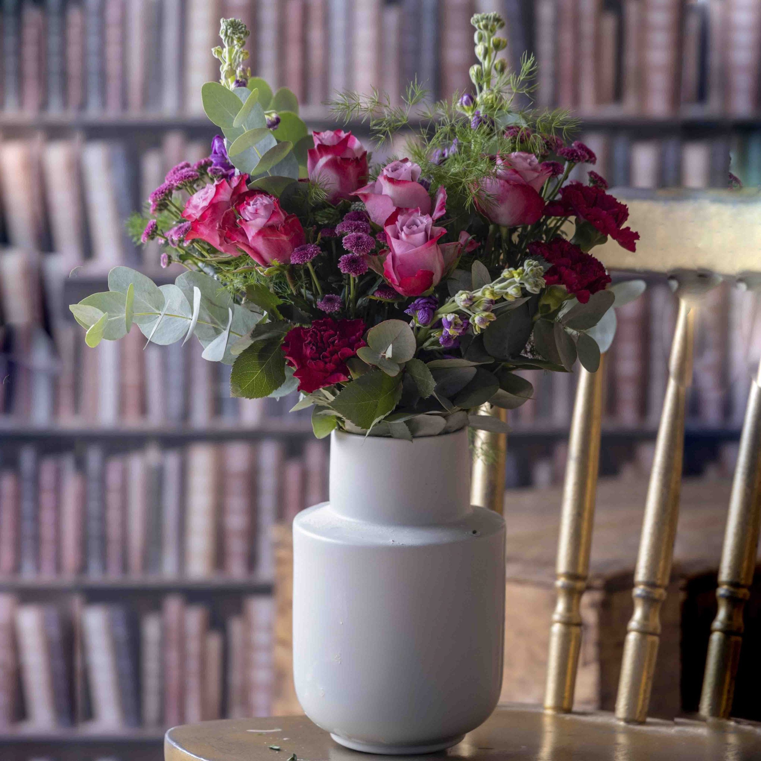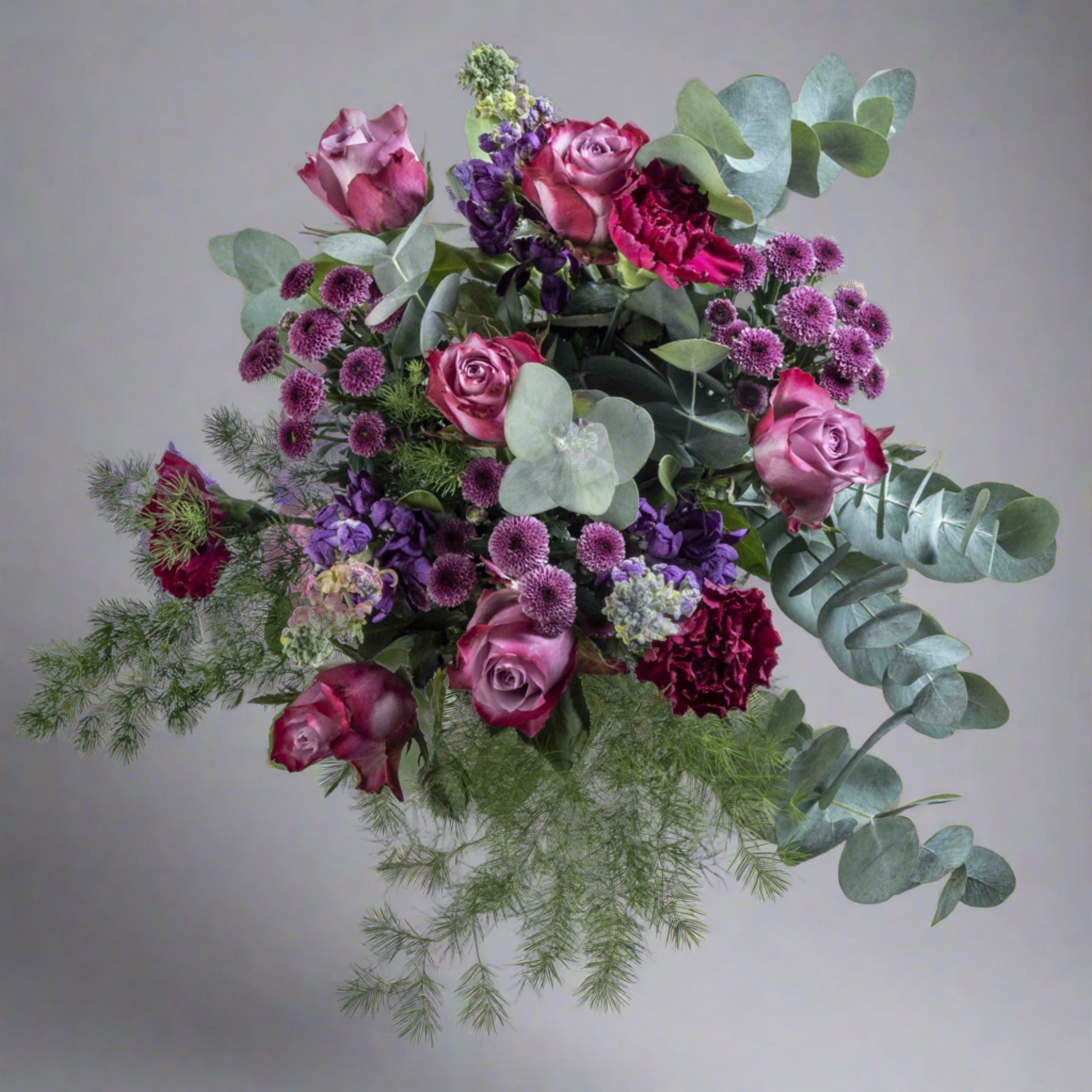 Indulge in the romance and elegance of our Lipstick Flower Bouquet, a captivating ensemble that embodies the essence of love and beauty. This romantic bouquet includes Roses, Ferns, Dianthus, Cute Purple Buttons, Eucalyptus, and Sweet Scented Stock, thoughtfully arranged to create a symphony of colours and textures that speaks the language of the heart.