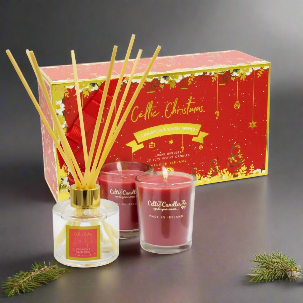 Diffuser & Candles Gift Set ~ Celtic Christmas ~ Cinnamon & Berries