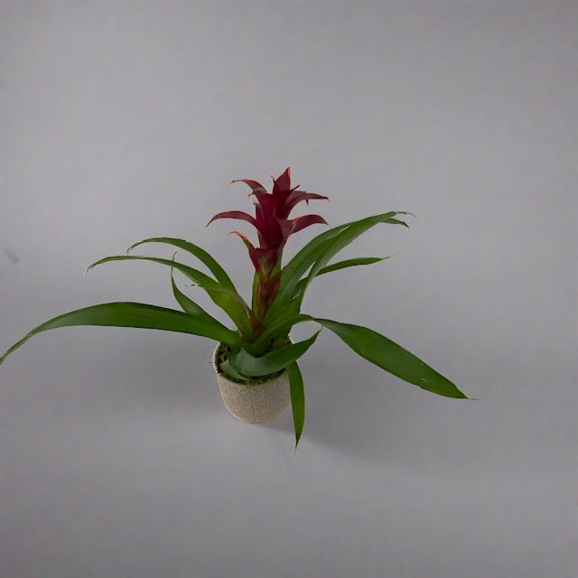 Scarlet Star Plant (Guzmania) in Ceramic Pot | Rare Bromeliad Houseplant