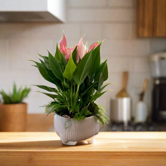 Elevate your decor and infuse your surroundings with the beauty of nature. Treat yourself or surprise someone special with our Anthurium Plant in a Ceramic Pot today, and let its vibrant presence bring joy and sophistication to any setting!