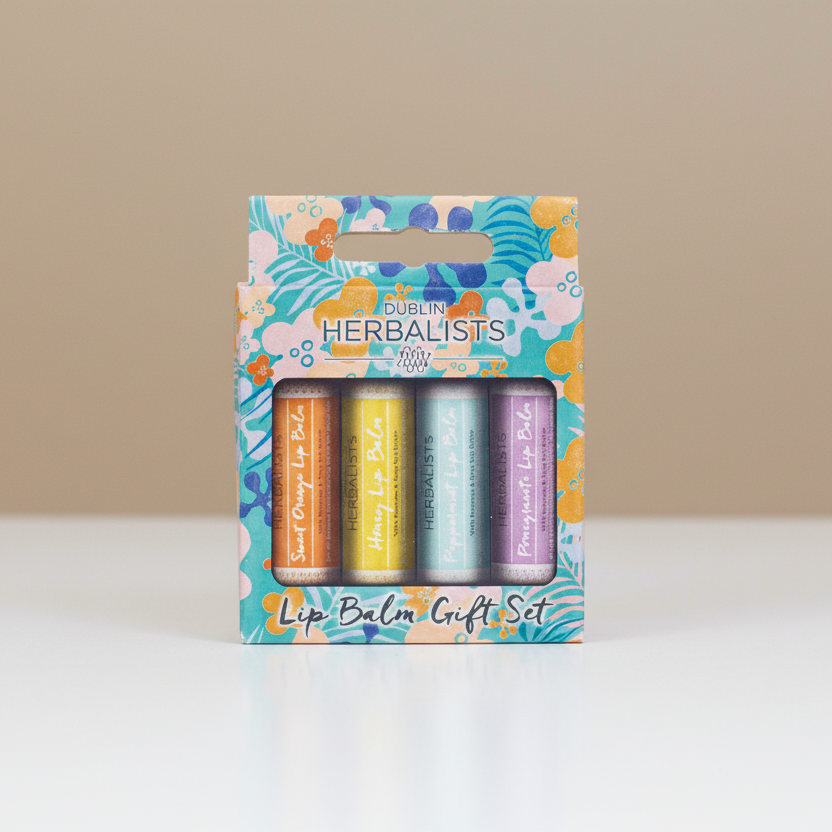 Indulge your lips with our lip balm set, featuring four great flavors - orange, peppermint, pomegranate, and honey! Whether you're gearing up for some serious smooching or just want to pamper your lips, our lip balm set is the perfect choice.