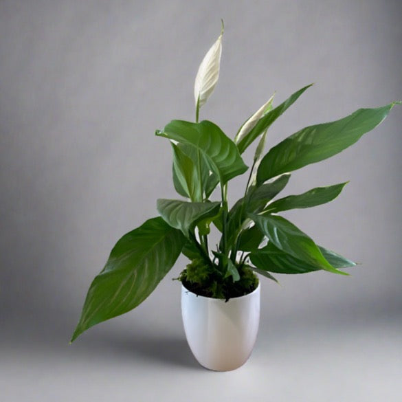 Elevate your space with the serene beauty of our Peace Lily Plant, elegantly presented in a chic ceramic pot. Renowned for its lush foliage and delicate white blooms, the Peace Lily brings a touch of tranquility to any room, making it a perfect addition to your home or office decor.